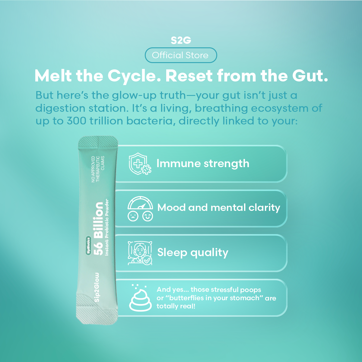 •Core Benefits: Kick-starts balanced digestion, provides initial immune support, begins addressing skin concerns via the gut-skin axis, and helps reduce occasional bloating. •Ideal For: Individuals new to probiotics, those wanting to test efficacy before committing, or anyone seeking a convenient one-month supply to address initial gut health discomfort. •Key Mechanism: Our multi-target synergy starts replenishing beneficial gut bacteria and strengthening the gut barrier from the very first dose. •Usage: Take one sachet daily. Consistency is key to initiating a healthier gut environment.