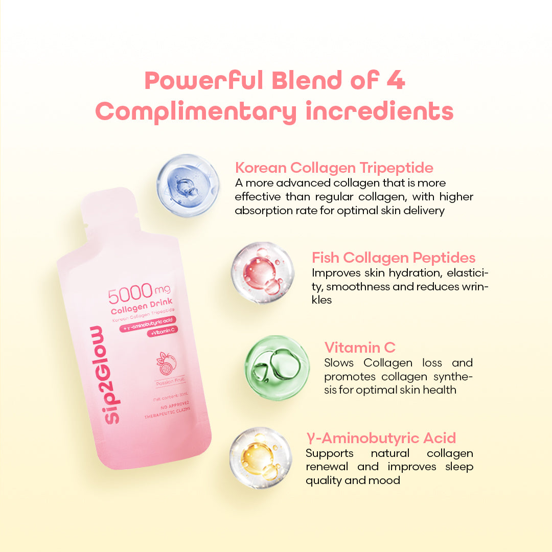 [B3G1] Sip2Glow Advanced Collagen Drink 5000mg Korean Collagen Tripeptide with Fish Collagen Peptide